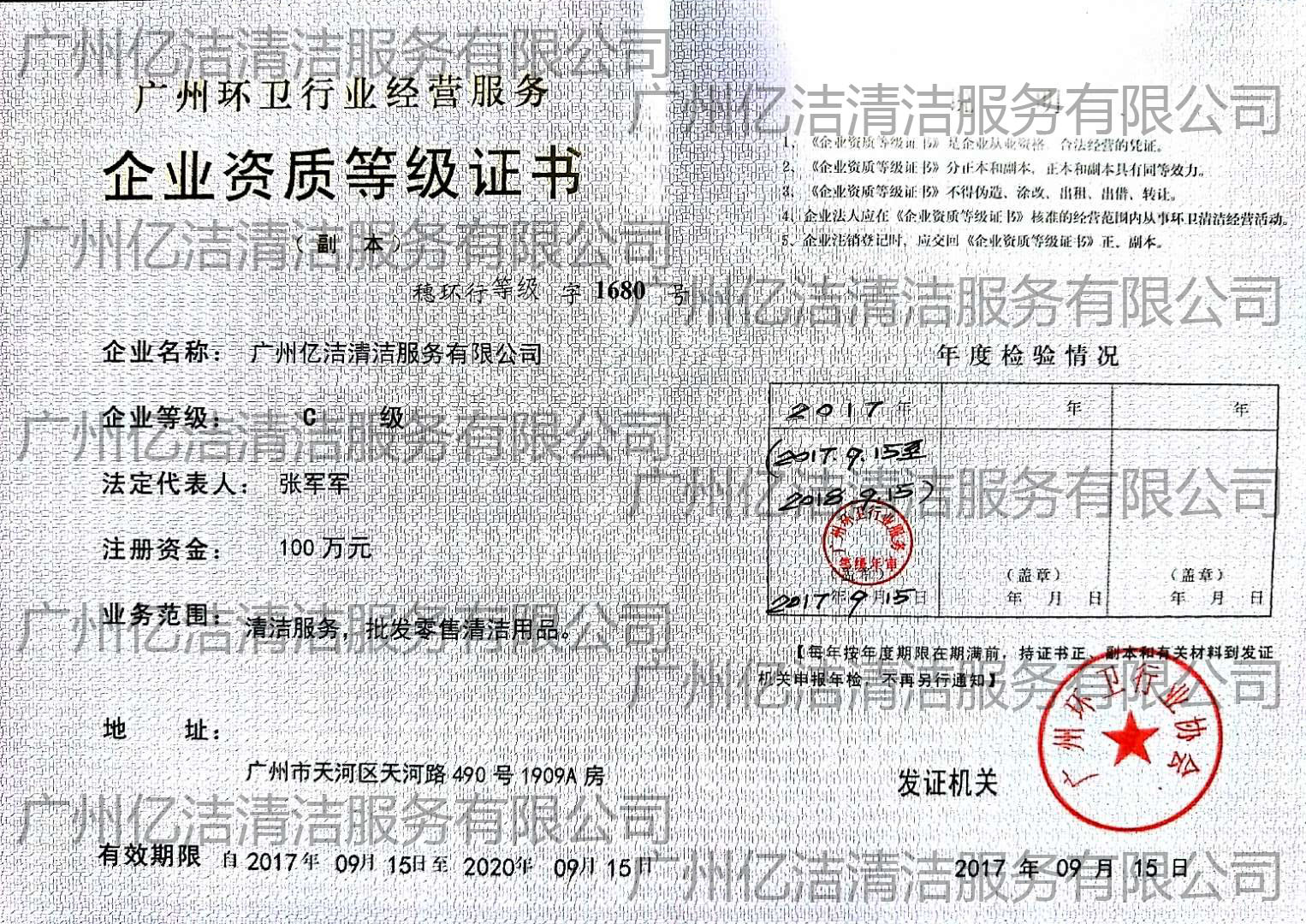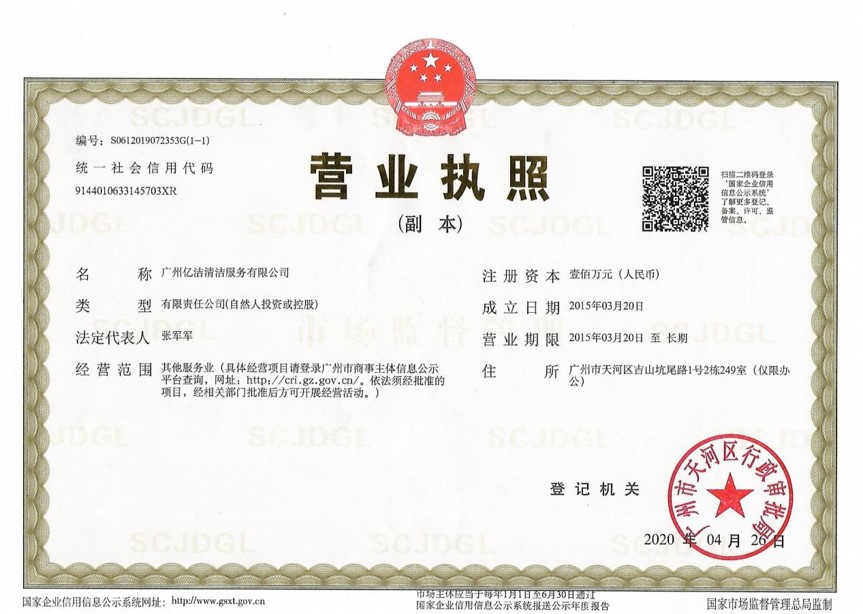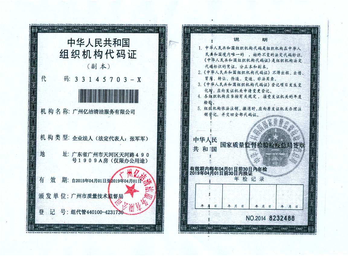 廣州億潔清潔服務(wù)有限公司是經(jīng)廣州市工商行政管理局批準(zhǔn)成立的(注冊資本:100萬元人民幣)。具有獨立法人資質(zhì)。公司成立2015年,公司具備完善的管理體系和高素質(zhì)管理隊伍,擁有特種技術(shù)人員33名,保潔服務(wù)人員上萬名,覆蓋廣州市,能及時調(diào)配并快速投入高效運行。我們的每個員工都經(jīng)過公司的嚴(yán)格篩選,嚴(yán)格培訓(xùn),定期培訓(xùn)后持證上崗以保證服務(wù)品質(zhì),保障客戶的權(quán)利,利益,形象等不受損失。 廣州億潔清潔公司是一家設(shè)備齊全,技術(shù)強大的綜合型清潔服務(wù)公司,為客戶提供完善服務(wù)尊定了堅定的基礎(chǔ)。 司于2010年全面推行了ISO9001質(zhì)量管理體系認(rèn)證和ISO14001國際環(huán)保體系認(rèn)證。先后獲得廣州高層建筑外墻清洗維修作業(yè)【安全資質(zhì)證書】、【廣州環(huán)衛(wèi)企業(yè)等級證書C級資質(zhì)】、廣州疾控中心頒發(fā)的【四害消殺服務(wù)資質(zhì)證】、【空氣治理A級資質(zhì)】、中國石材協(xié)會頒發(fā)的【石材資質(zhì)B級資質(zhì)】等。 廣州億潔清潔服務(wù)有限公司致力于打造專業(yè)、實惠、靠譜的保潔服務(wù)公司,把專業(yè)的事情交給專業(yè)的我們,您放心! 億潔清潔服務(wù)項目: 廣州保潔服務(wù):新建樓宇、別墅、酒店、醫(yī)院、辦公樓、賓館、企事業(yè)單位廠房竣工后開荒及裝修后精細保潔.工程保潔服務(wù)。 廣州物業(yè)托管:為廣州市各大企事業(yè)單位、賓館、政府機關(guān)、小區(qū)物業(yè)、酒店及廠房提供專業(yè)化保潔、園林、設(shè)施維護等管理服務(wù)。 廣州高空作業(yè):高空玻璃幕...[詳情]